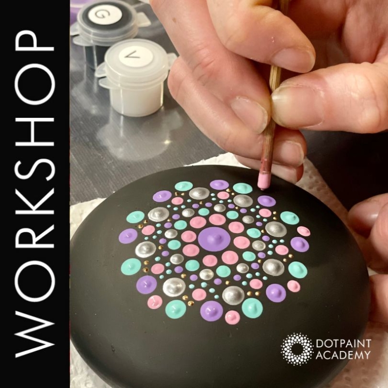 Je bent van harte welkom in mijn studio in Sassenheim om dit zelf te ervaren en kennis te maken met dotpainten. Tijdens deze workshop leer ik je welke materialen ik gebruik om kleine en grote dots te maken en hoe je de mooiste patronen creëert. We werken met acrylverf van het merk Pentart. Na wat oefenen op papier ga je zelf lekker aan de slag op een mooie ronde steen.