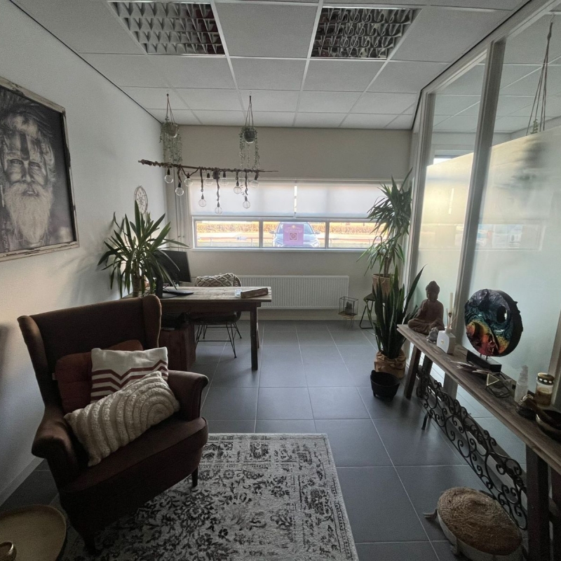 De ruimte maakt deel uit van een sfeervol praktijkpand dat wordt gedeeld met een holistisch psycholoog, die de volledig ingerichte praktijk op de 1e verdieping in gebruik heeft.